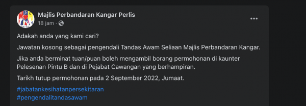 Iklan Jawatan Majlis Perbandaran Kangar (MPK)