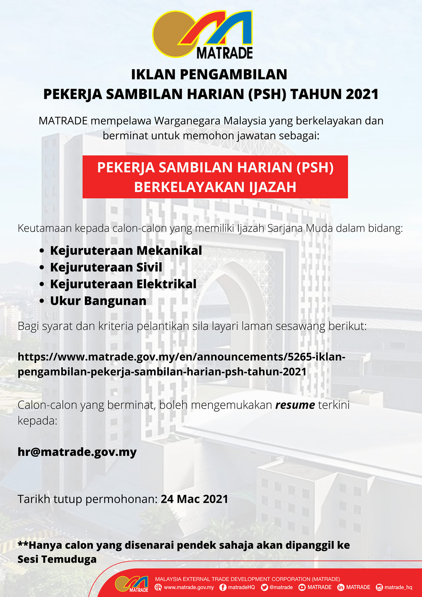 Iklan Jawatan Malaysia External Trade Development Corporation (MATRADE)