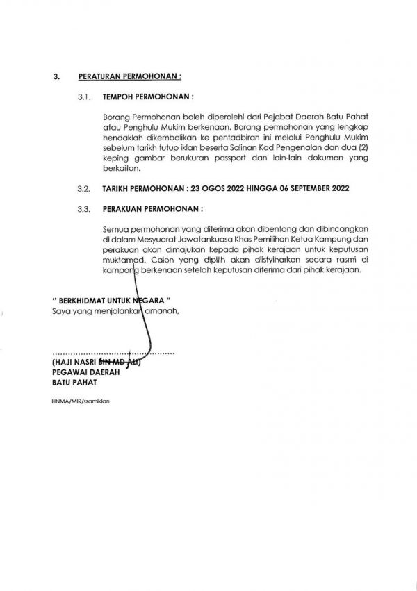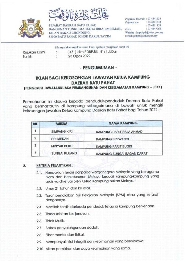 Iklan Jawatan Pejabat Daerah Batu Pahat