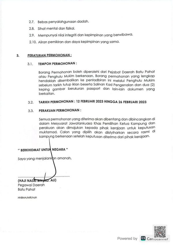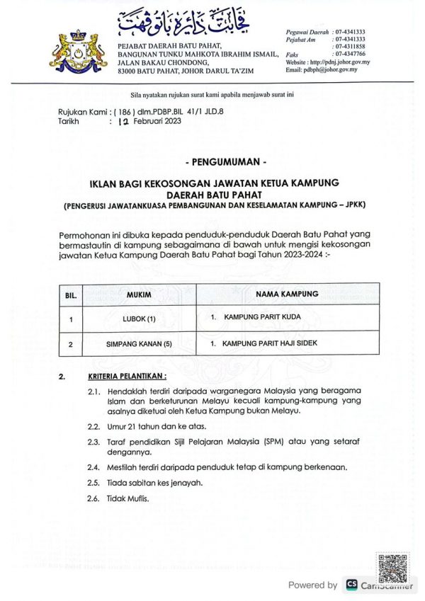 Iklan Jawatan Pejabat Daerah Batu Pahat