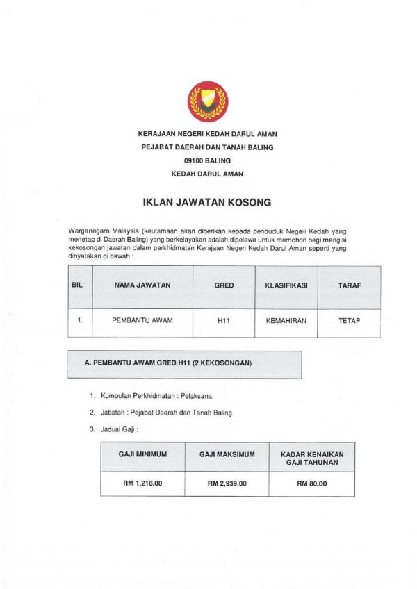 Iklan Jawatan Pejabat Daerah Dan Tanah Baling