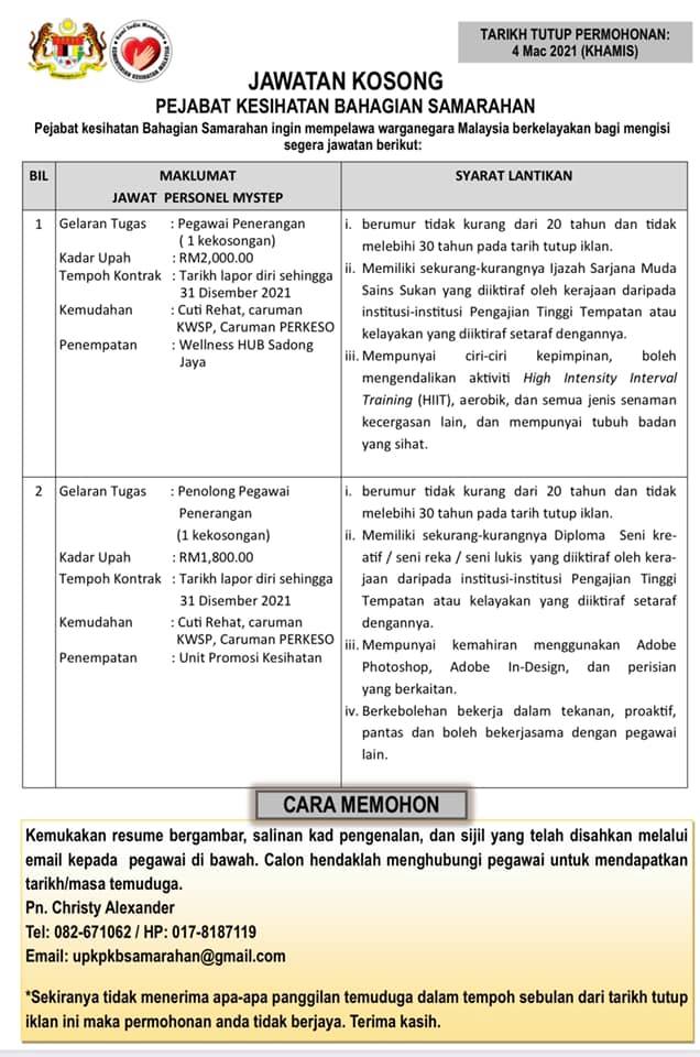 Iklan Jawatan Pejabat Kesihatan Bahagian Samarahan