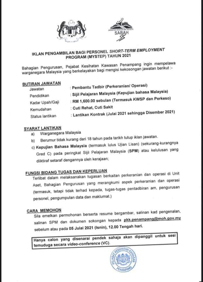 Iklan Jawatan Pejabat Kesihatan Kawasan Penampang