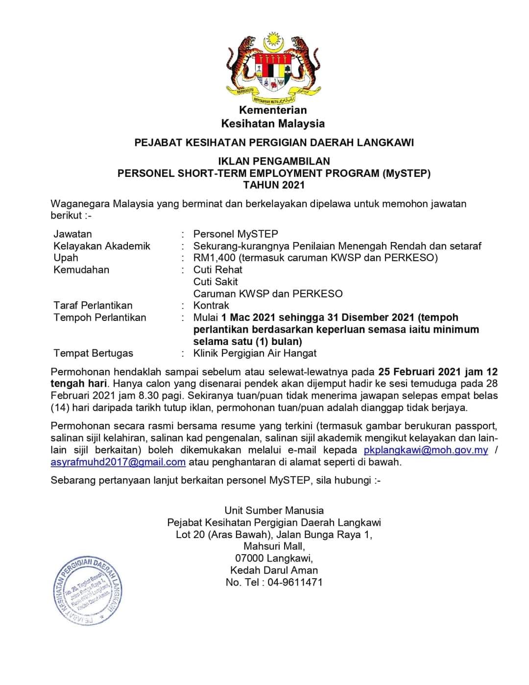 Iklan Jawatan Pejabat Kesihatan Pergigian Daerah Langkawi