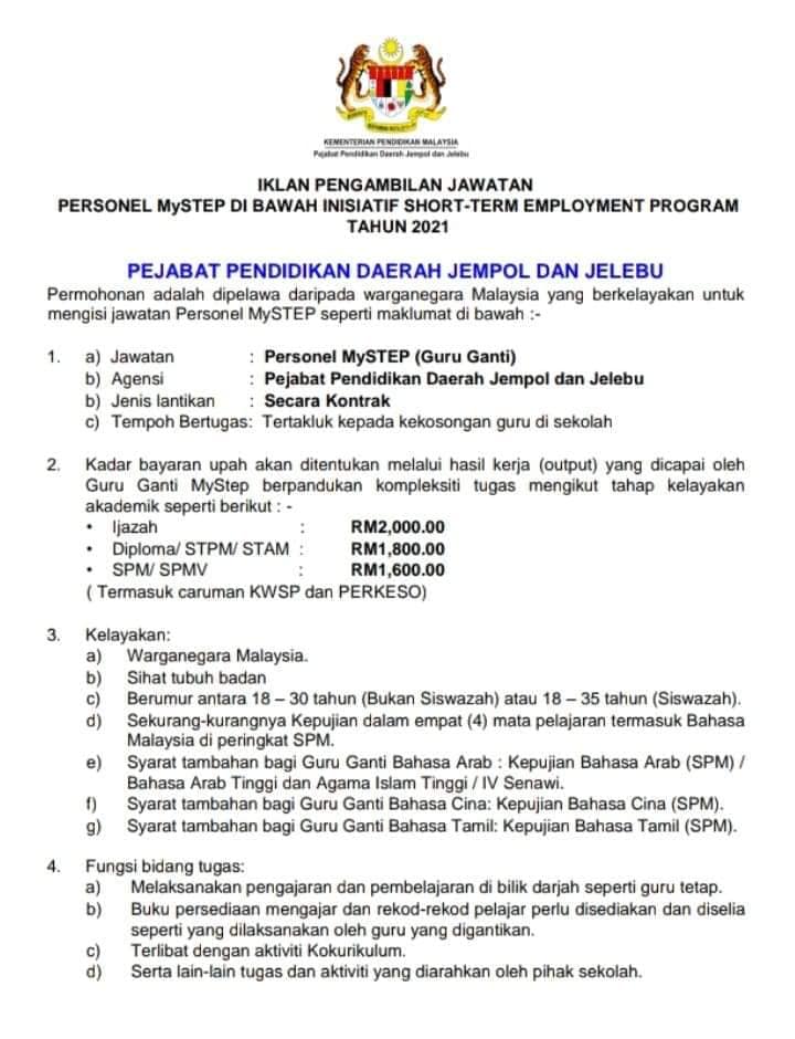 Iklan Jawatan Pejabat Pendidikan Daerah Jempol Dan Jelebu