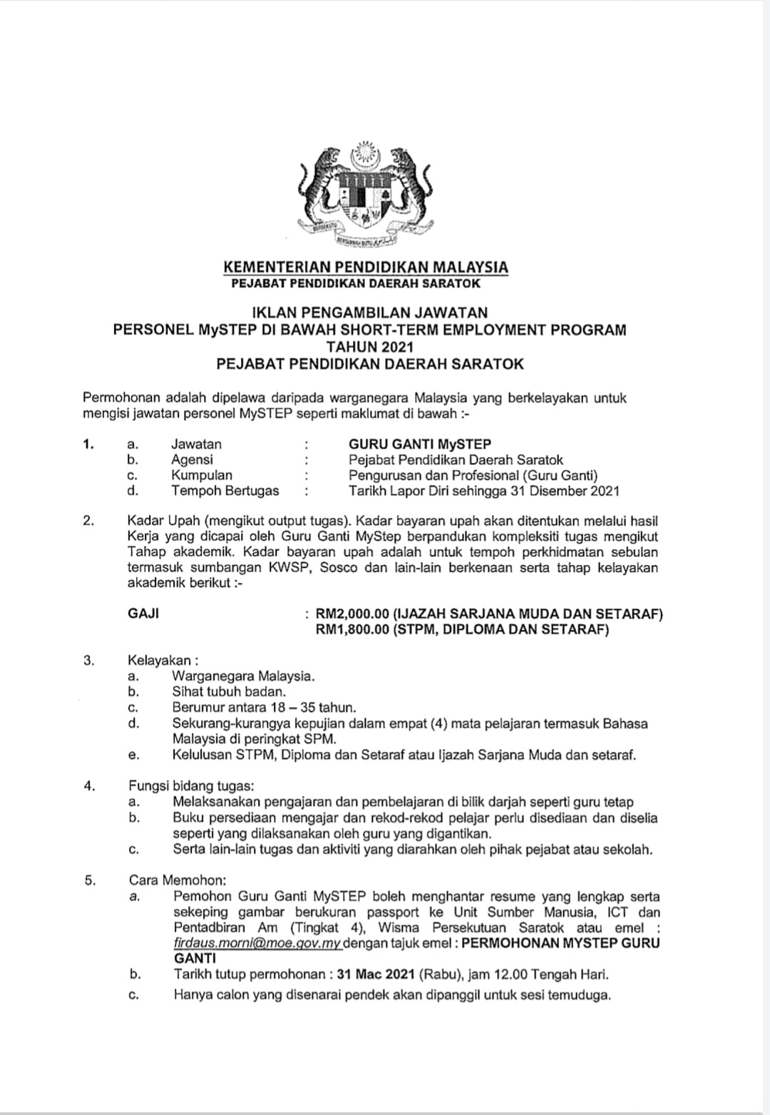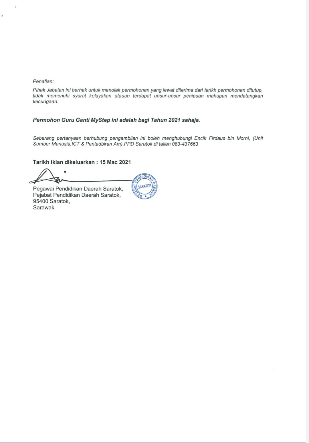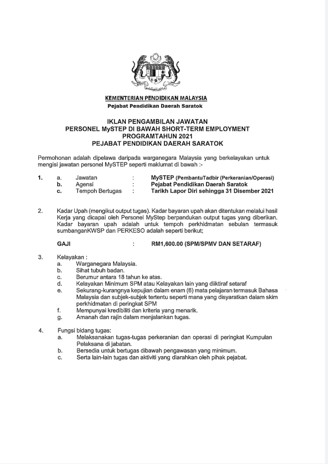 Iklan Jawatan Pejabat Pendidikan Daerah Saratok