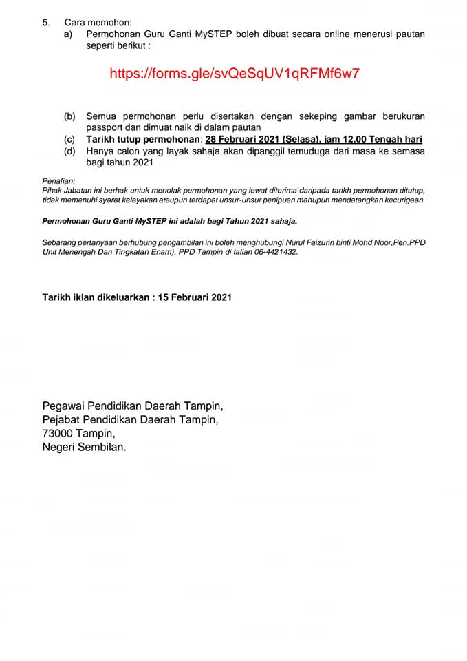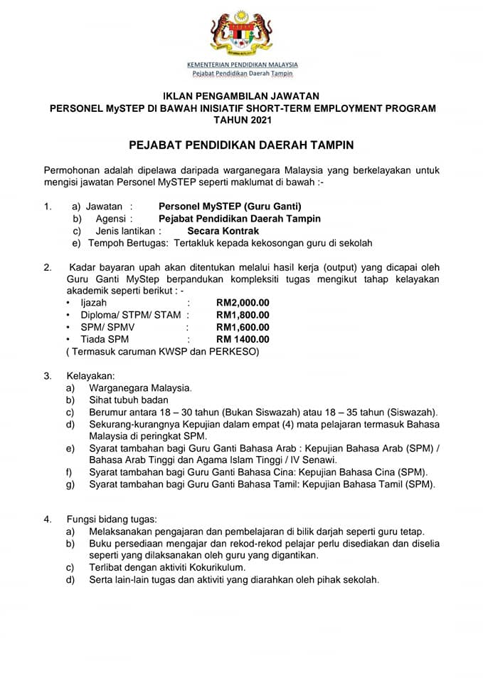 Iklan Jawatan Pejabat Pendidikan Daerah Tampin