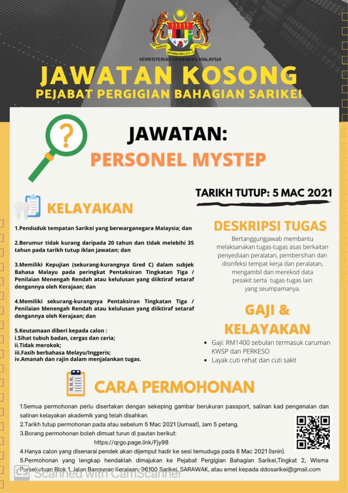 Iklan Jawatan Pejabat Pergigian Bahagian Sarikei