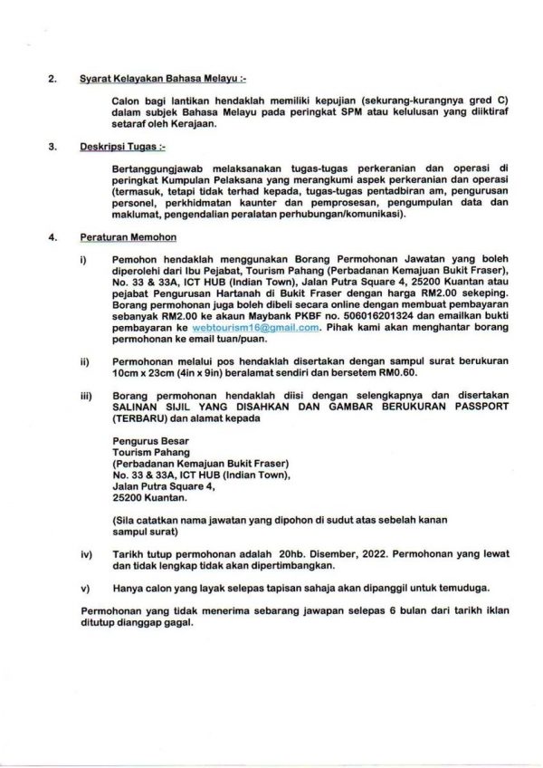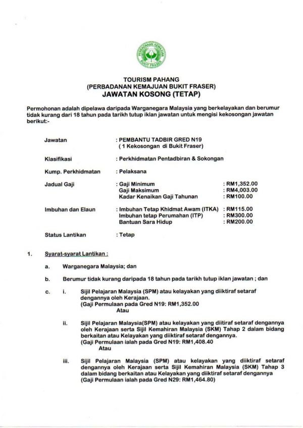Iklan Jawatan Perbadanan Kemajuan Bukit Fraser