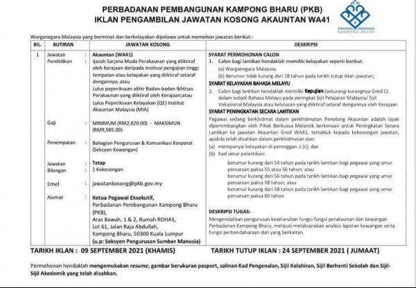IKlan Jawatan Perbadanan Pembangunan Kampong Bharu