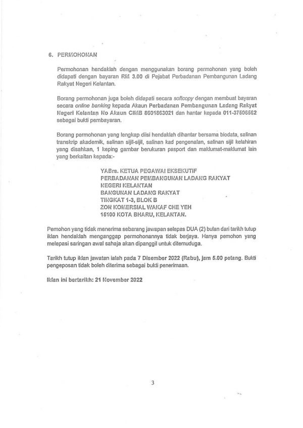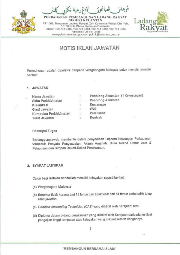 Iklan Jawatan Perbadanan Pembangunan Ladang Rakyat Negeri Kelantan