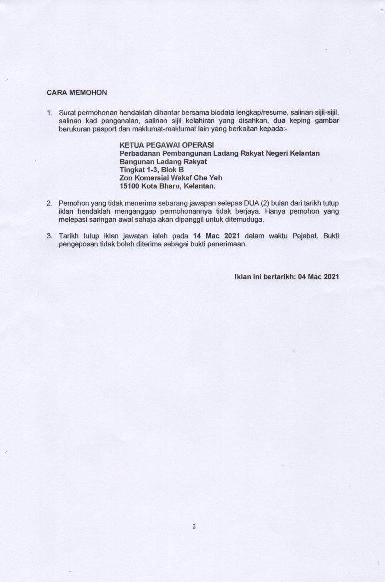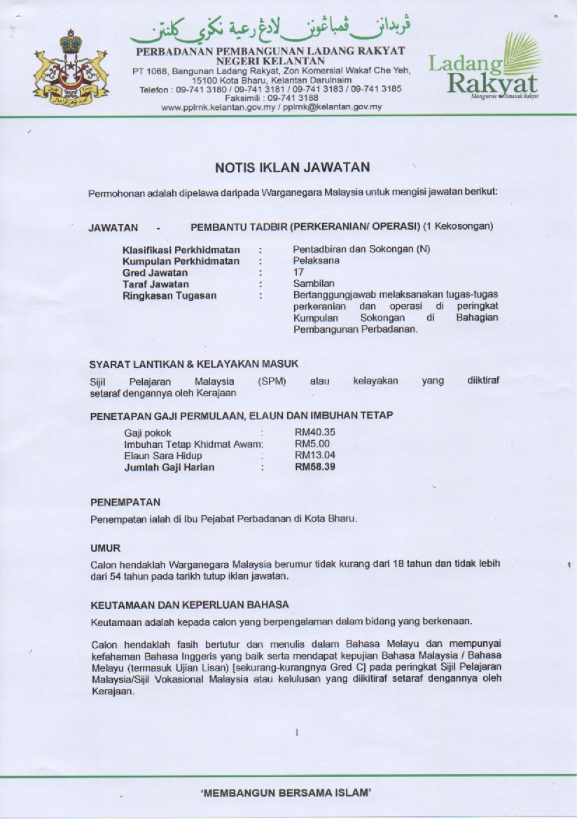Iklan Jawatan Perbadanan Pembangunan Ladang Rakyat Negeri Kelantan