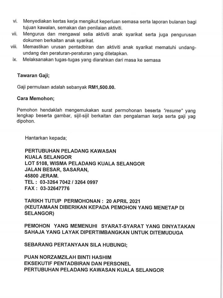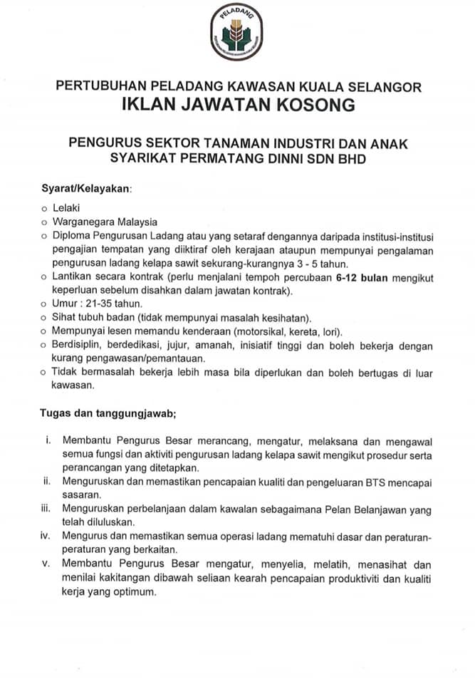Iklan Jawatan Pertubuhan Peladang Kawasan Kuala Selangor