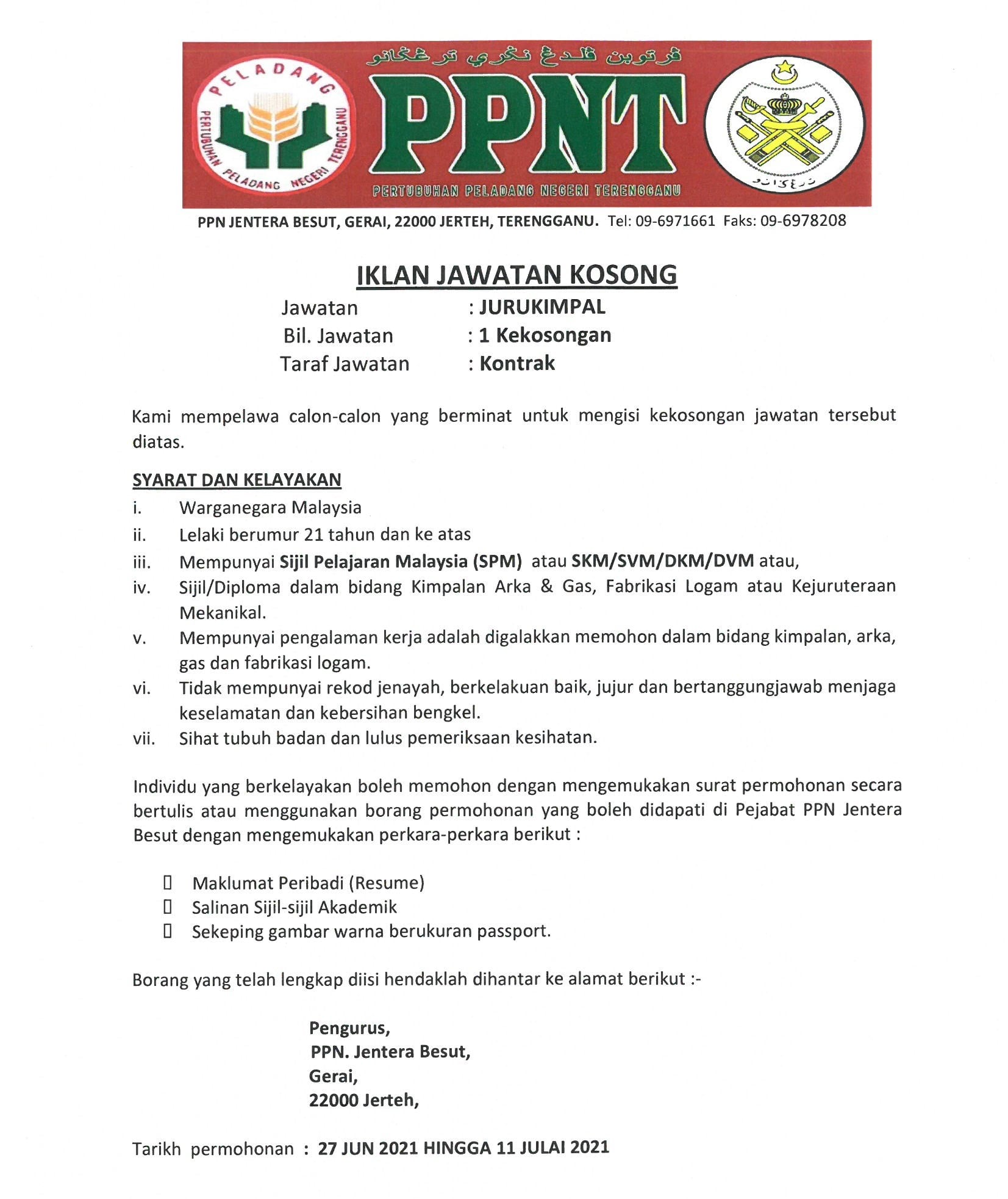Iklan Jawatan Pertubuhan Peladang Negeri Terengganu