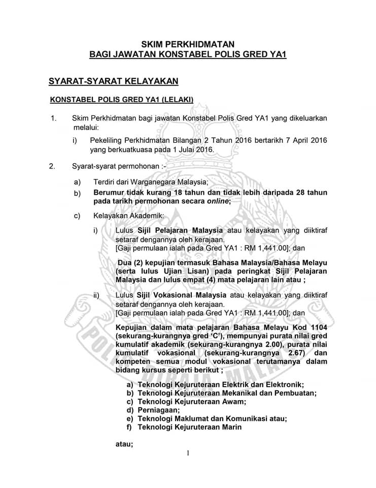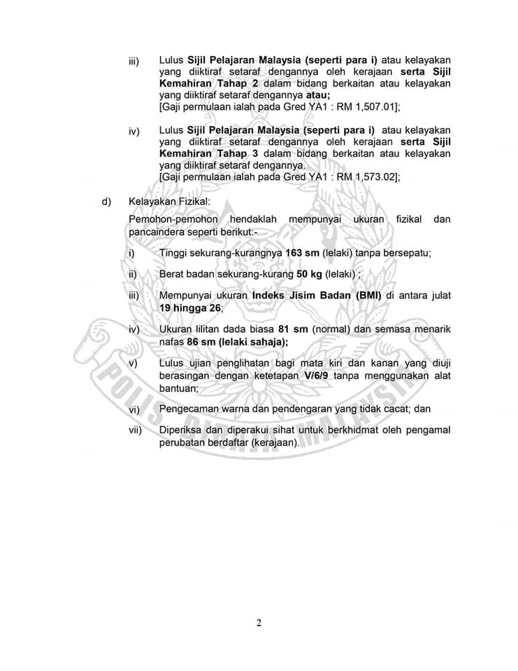 Iklan Jawatan Polis Diraja Malaysia (PDRM)