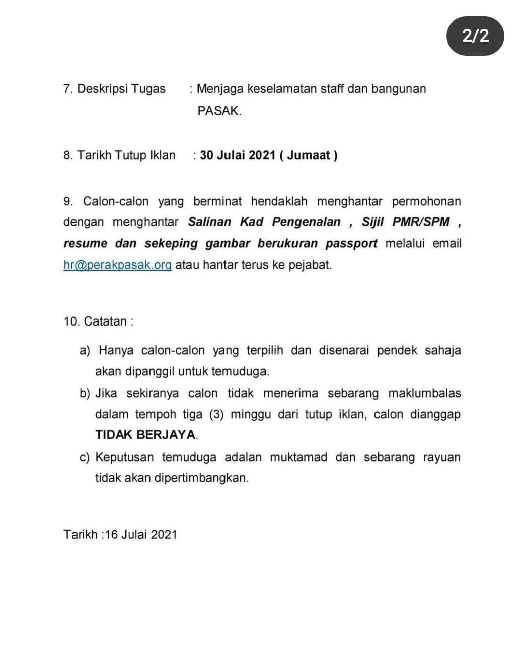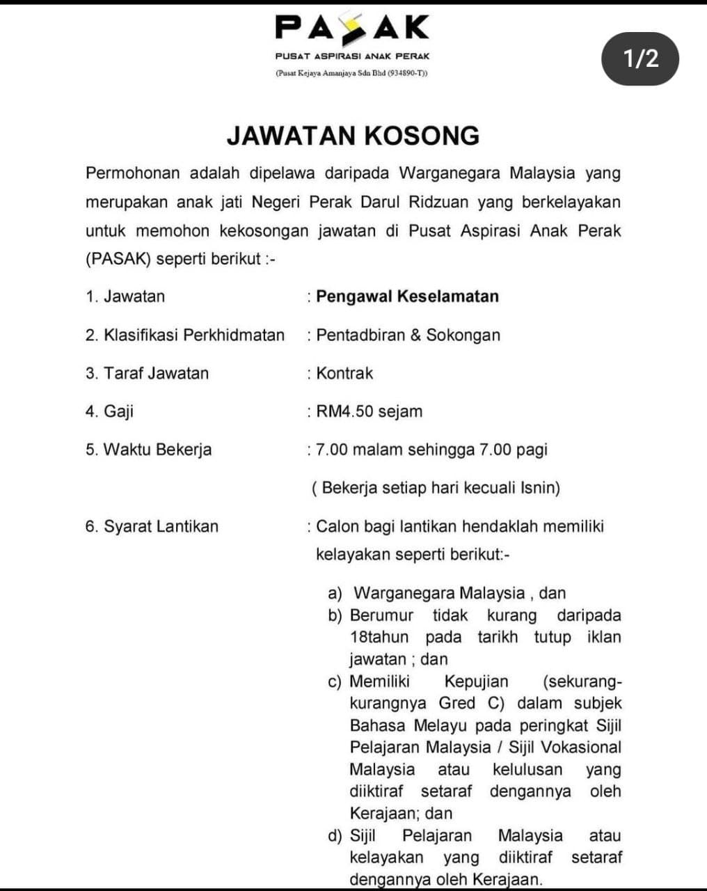 Iklan Jawatan Pusat Aspirasi Anak Perak – PASAK