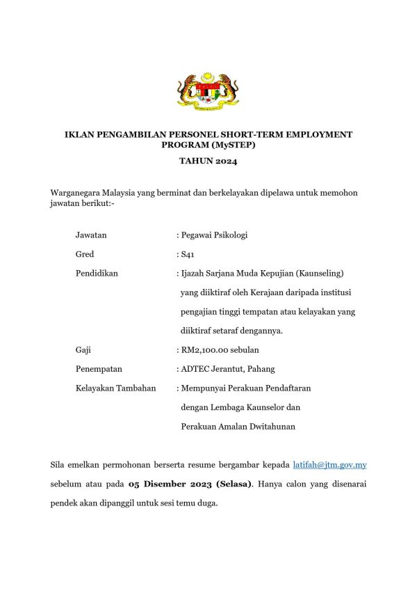 Iklan Jawatan Pusat Latihan Teknologi Tinggi (ADTEC)
