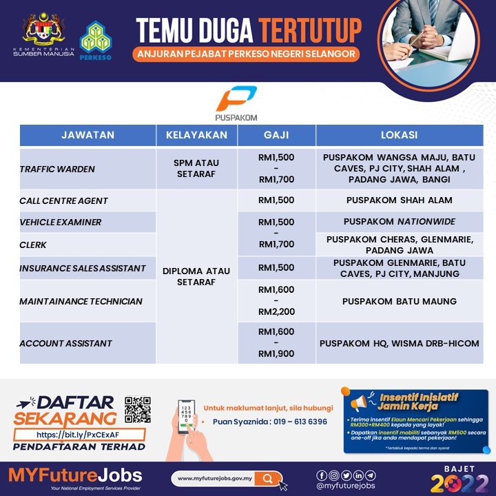 Iklan Jawatan Pusat Pemeriksaan Kenderaan Berkomputer (PUSPAKOM)
