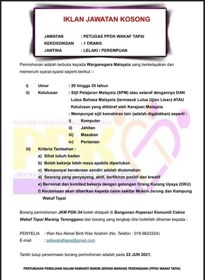 Iklan Jawatan Pusat Pemulihan Dalam Komuniti (PDK)