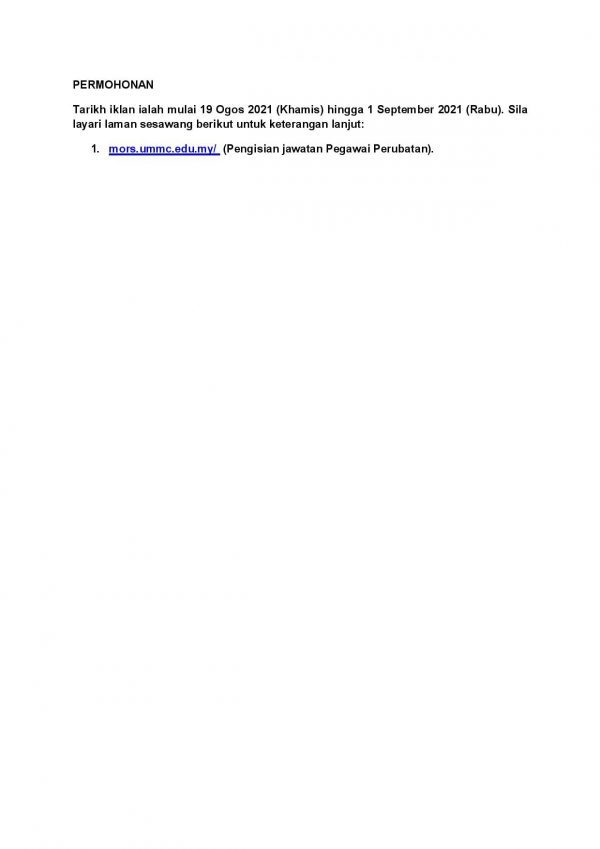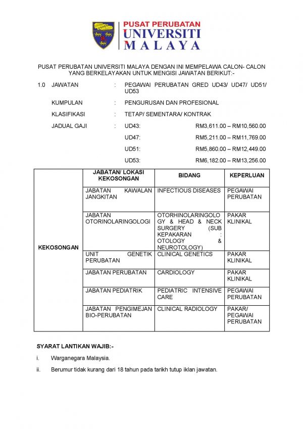 Iklan Jawatan Pusat Perubatan Universiti Malaya (PPUM)