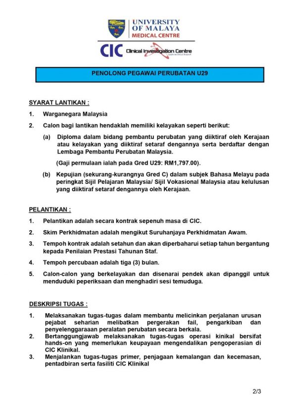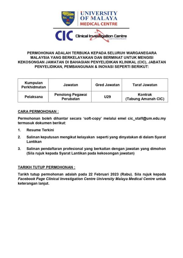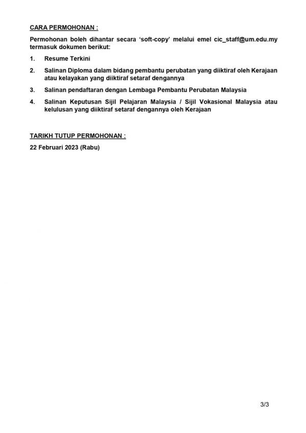 Iklan Jawatan Pusat Perubatan Universiti Malaya (PPUM)