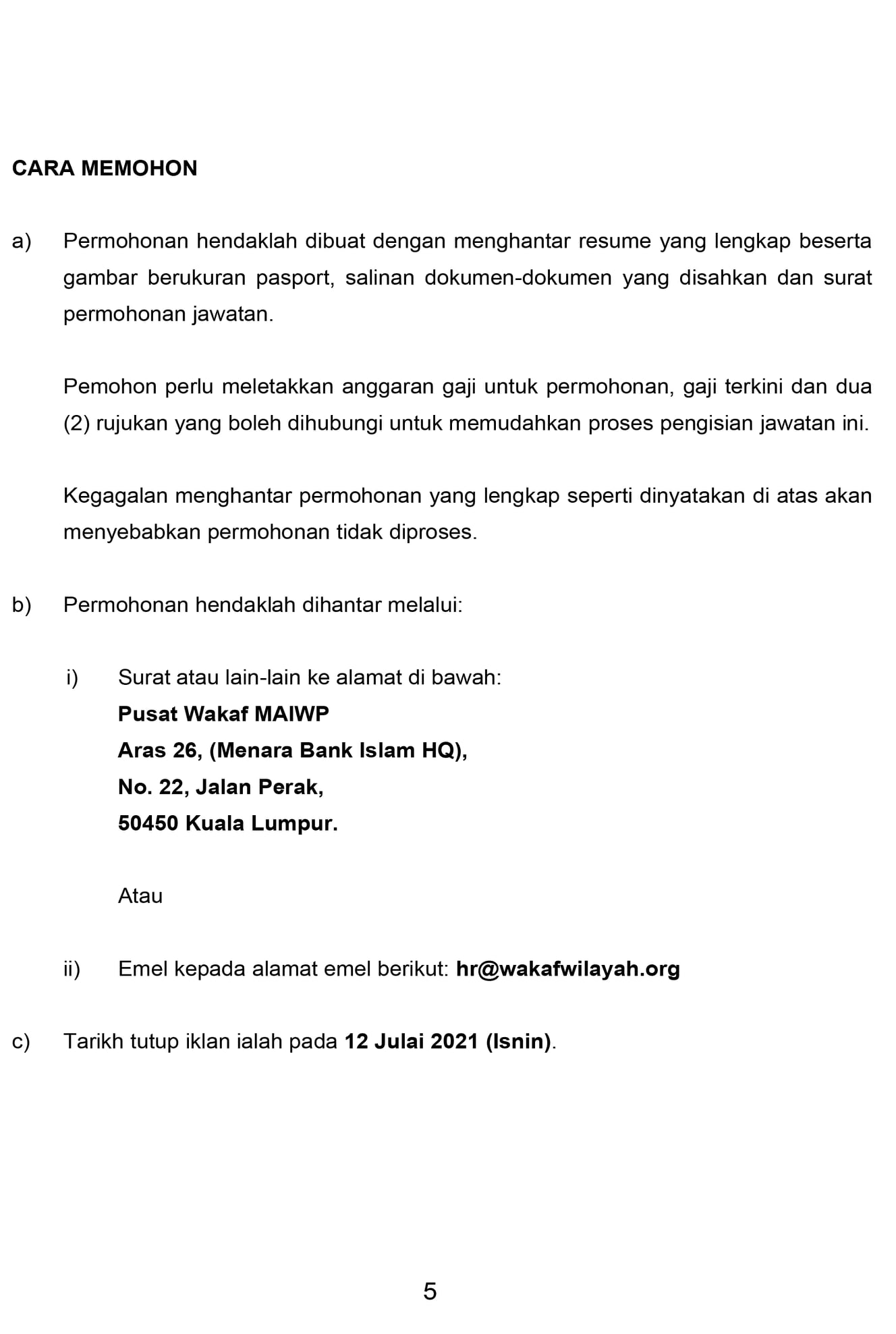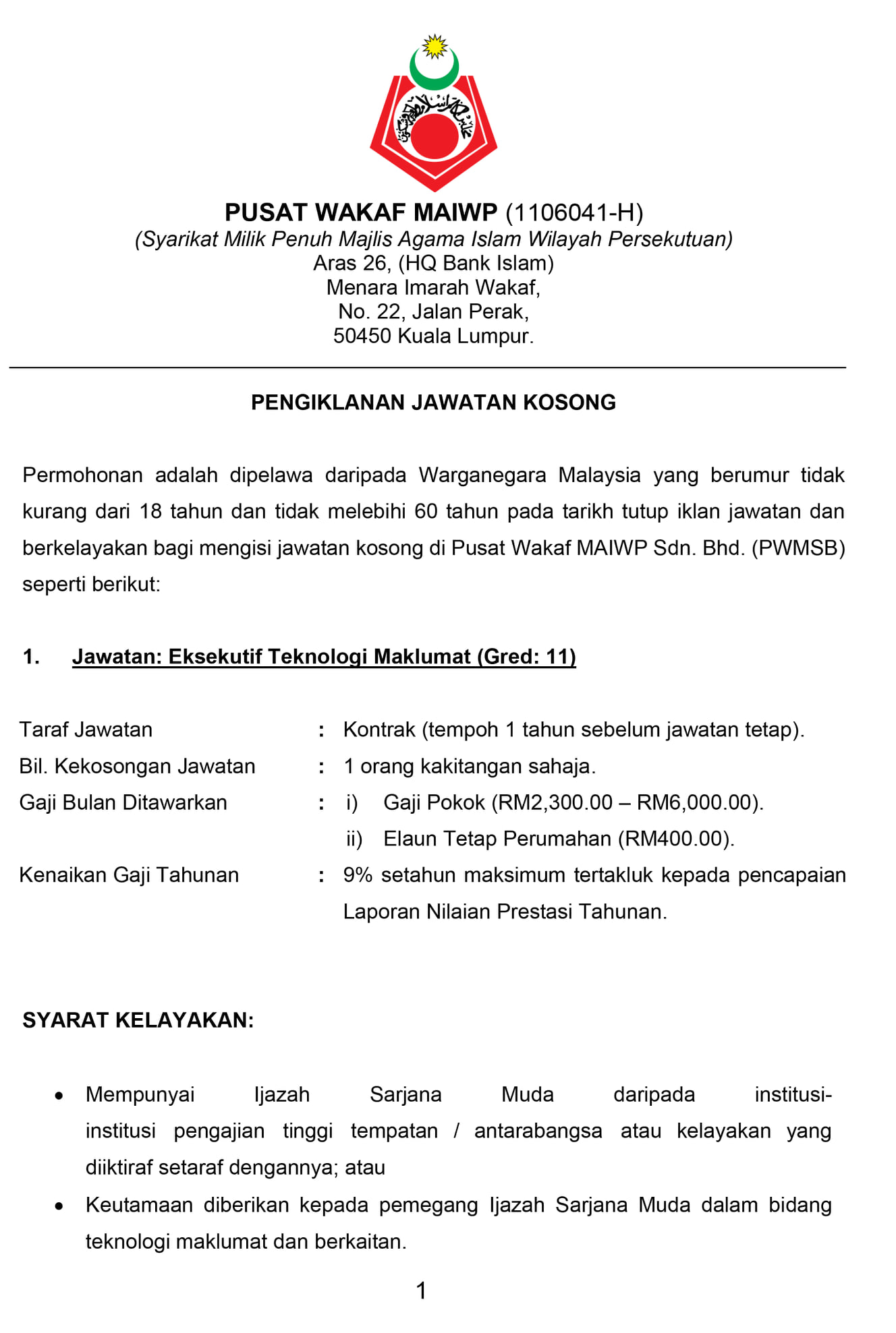 Iklan Jawatan Pusat Wakaf MAIWP