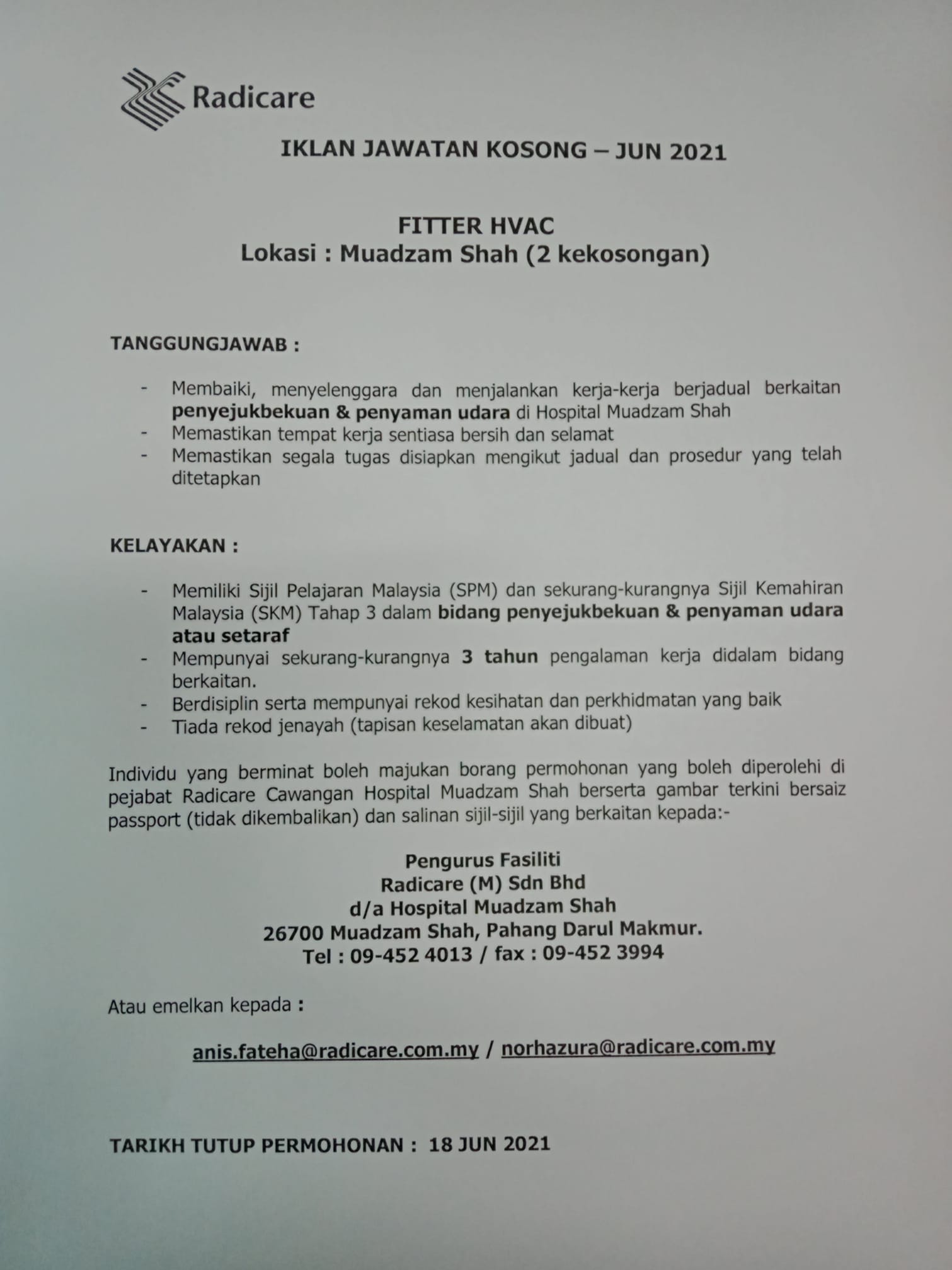 Iklan Jawatan Radicare