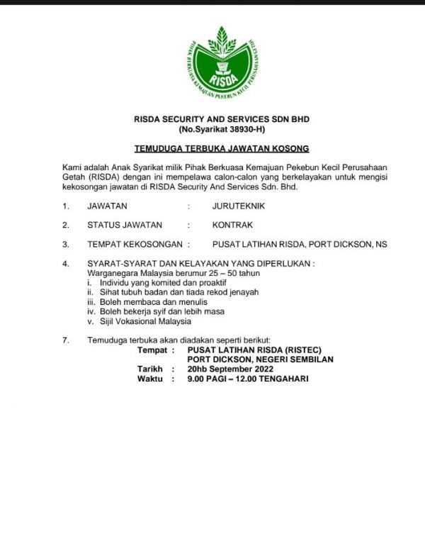 Iklan Jawatan RISDA Security And Services