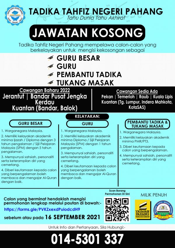 Iklan Jawatan Tadika Tahfiz Negeri Pahang