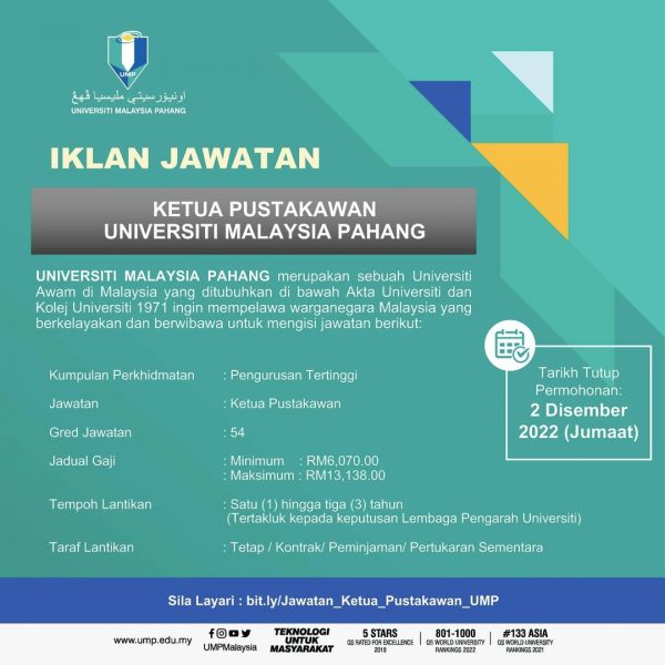 Iklan Jawatan Universiti Malaysia Pahang (UMP)