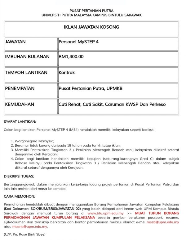 Iklan Jawatan Universiti Putra Malaysia (UPM)