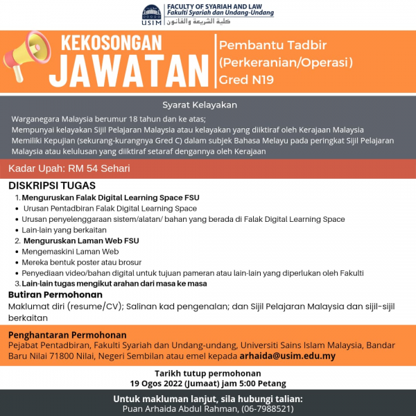 Iklan Jawatan Universiti Sains Islam Malaysia (USIM)