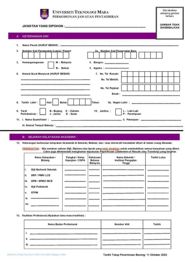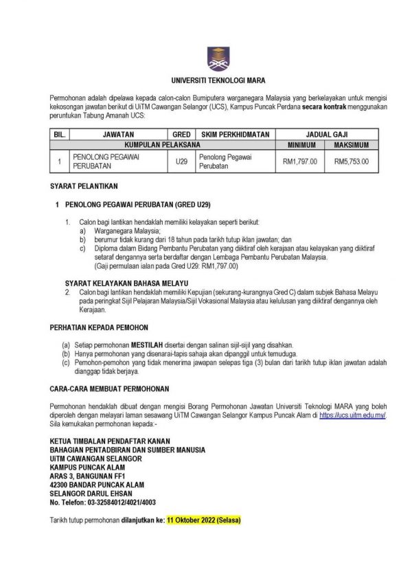 IKlan Jawatan Universiti Teknologi MARA (UiTM)