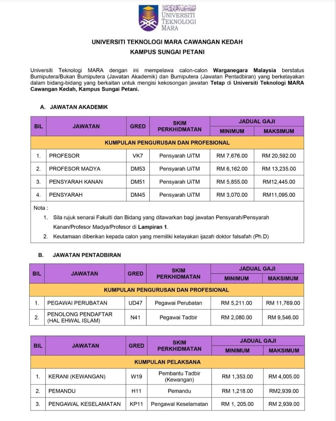 Iklan Jawatan Universiti Teknologi MARA