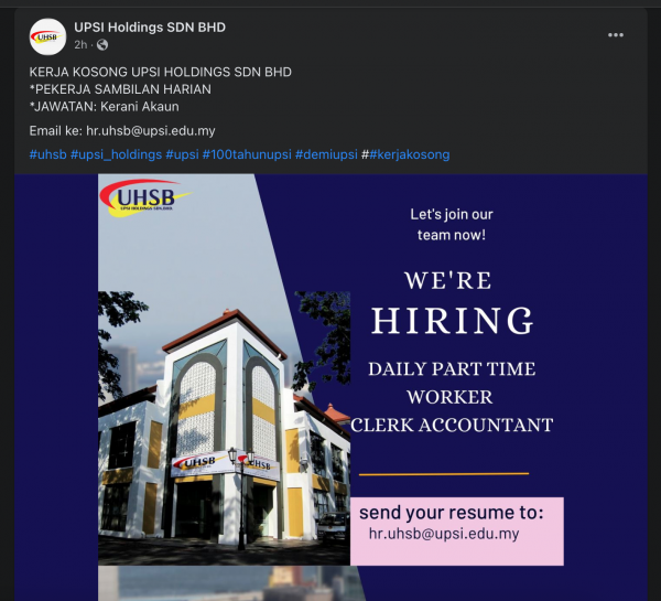 Iklan Jawatan UPSI Holdings Sdn Bhd
