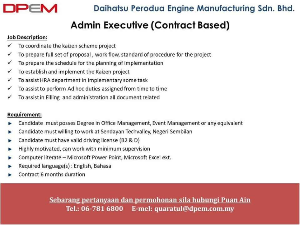 Jawatan Kosong Daihatsu Perodua Engine Manufacturing Sdn Bhd