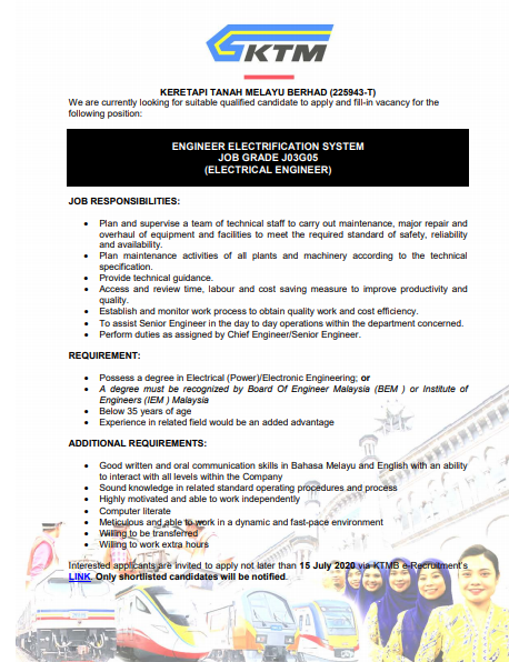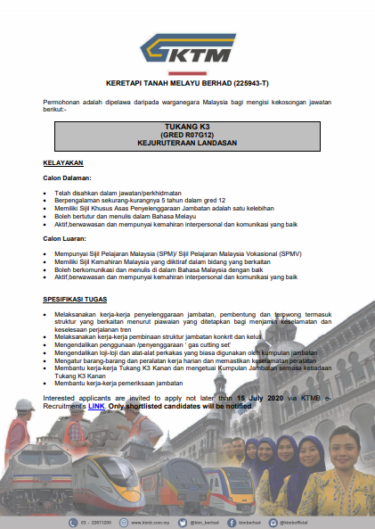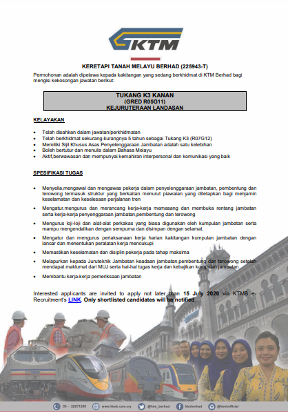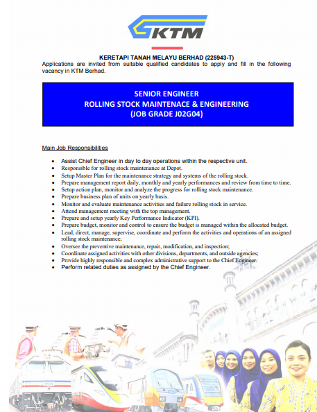 Jawatan Kosong Keretapi Tanah Melayu Berhad (KTMB)