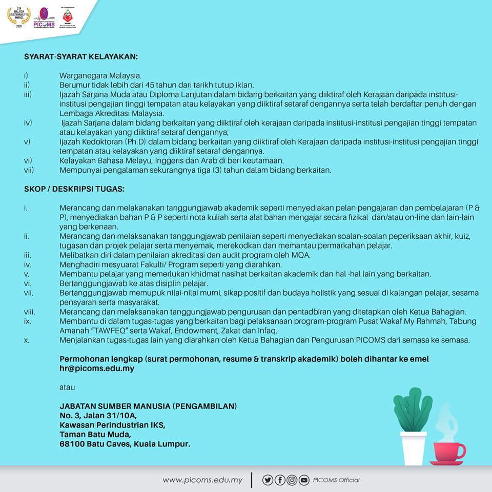 Jawatan Kosong Kolej Universiti Antarabangsa PICOMS
