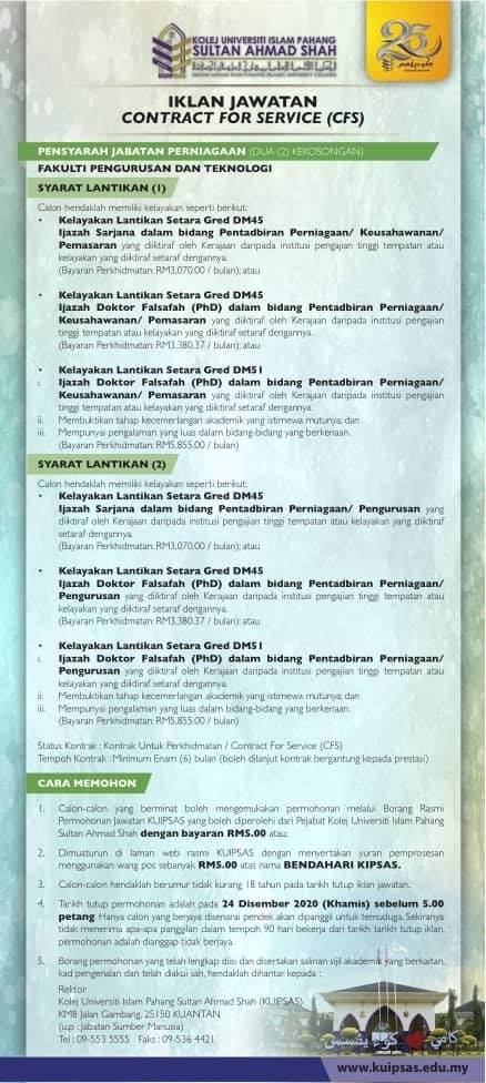 Jawatan Kosong Kolej Universiti Islam Pahang Sultan Ahmad Shah (KUIPSAS)