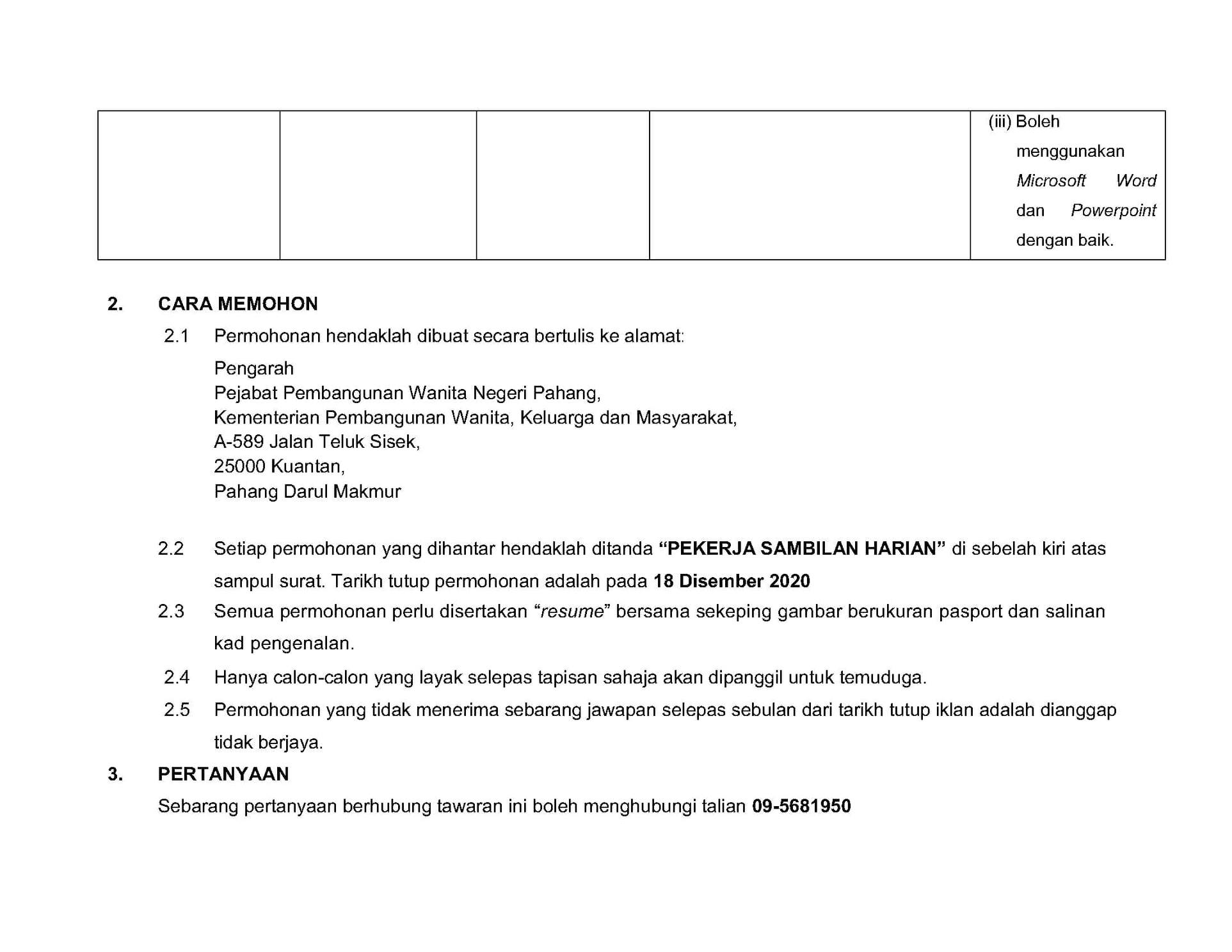 Jawatan Kosong Pejabat Pembangunan Wanita Negeri Pahang