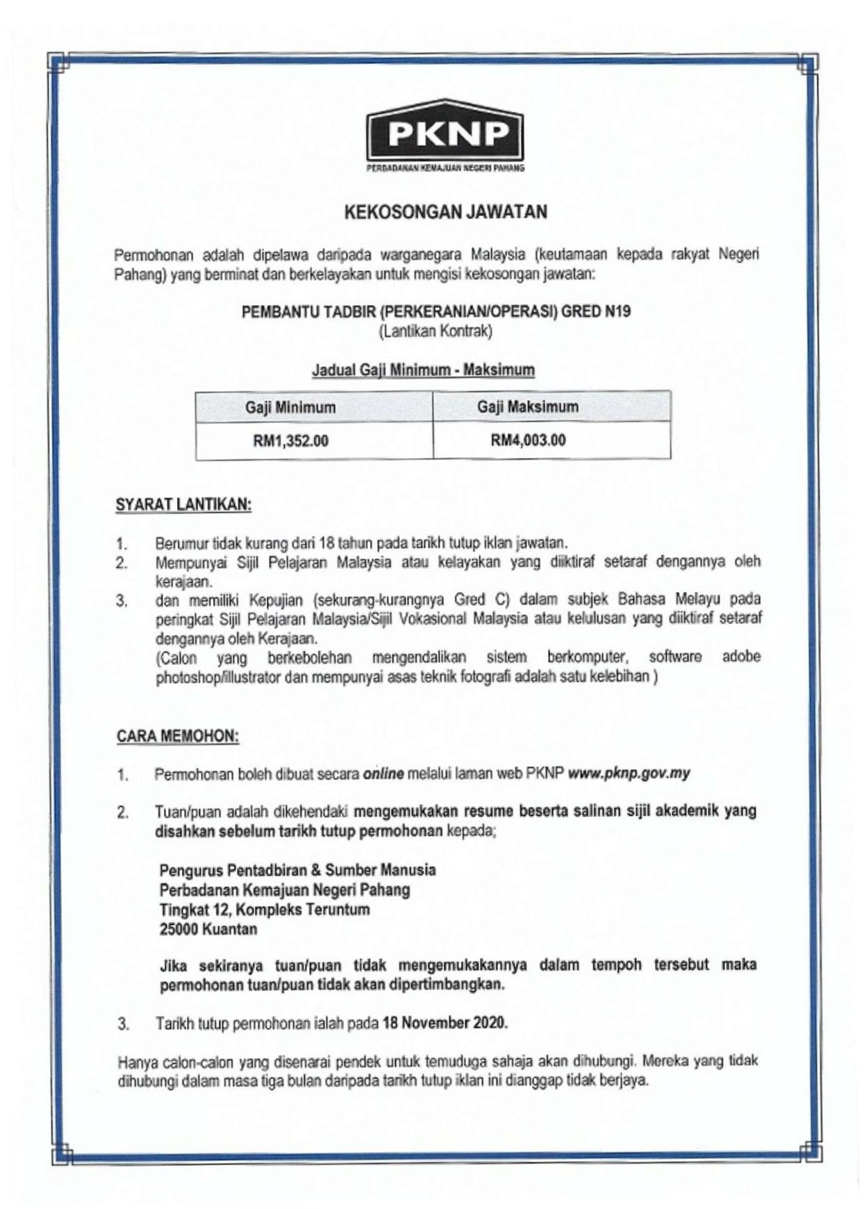 Jawatan Kosong Perbadanan Kemajuan Negeri Perak (PKNP)