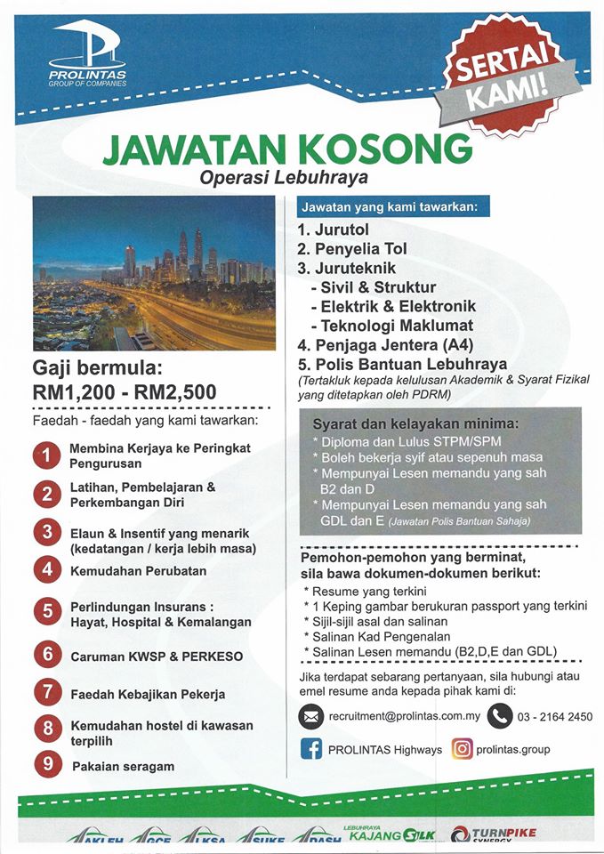 Jawatan Kosong Projek Lintasan Kota Holdings Sdn Bhd (PROLINTAS)