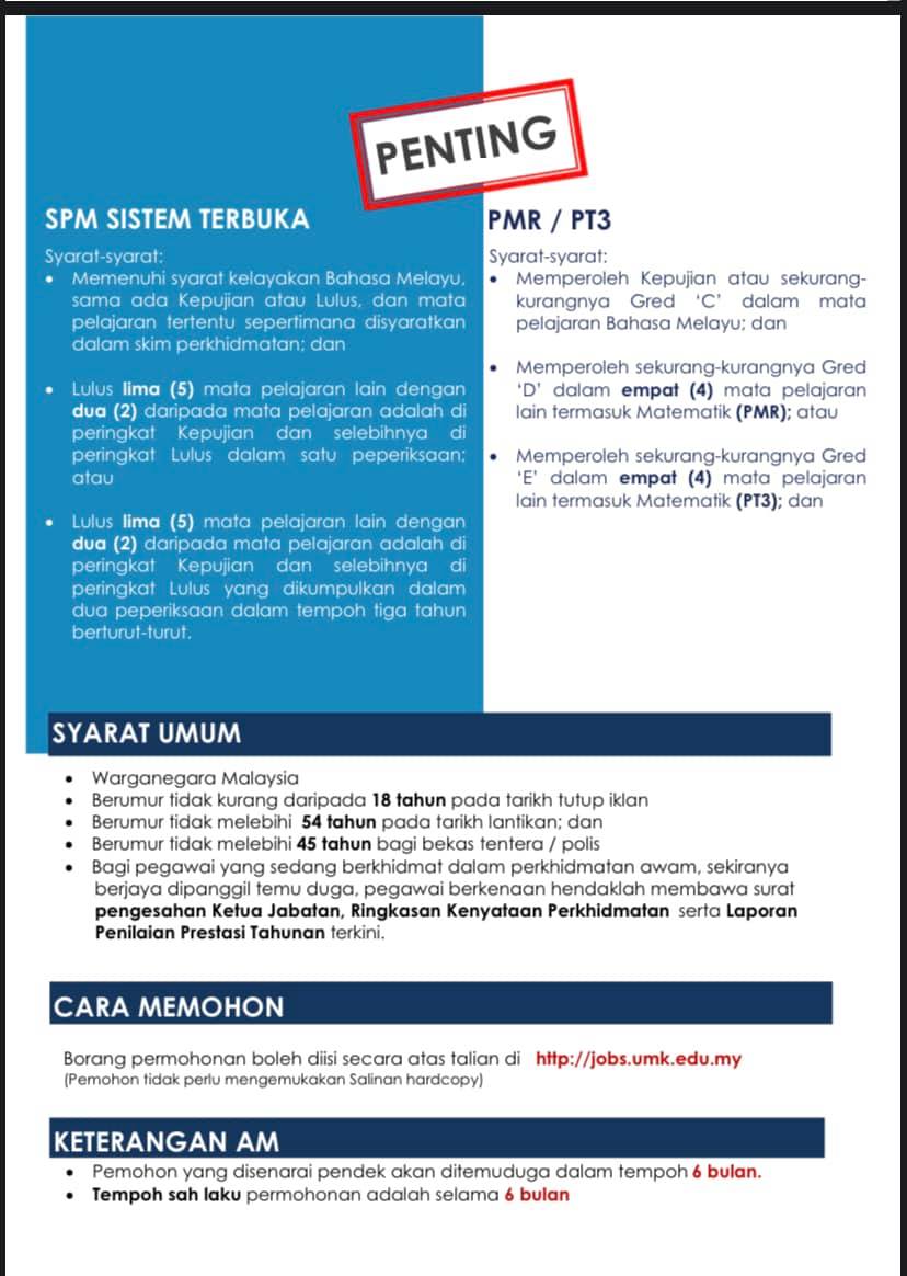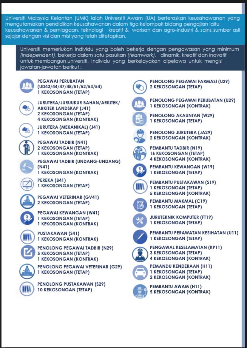 Jawatan Kosong Universiti Malaysia Kelantan (UMK)