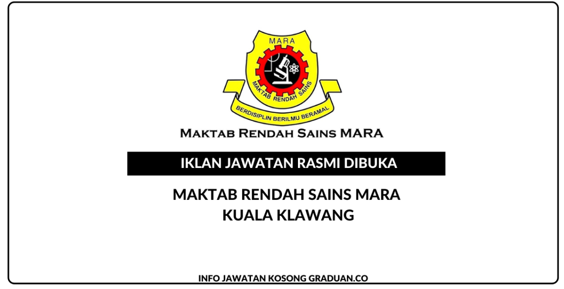 - Nama Majikan: Maktab Rendah Sains Mara (MRSM) Kuala Klawang