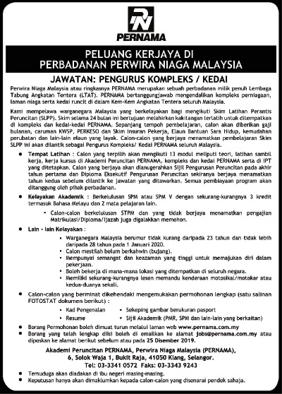 - Nama Majikan: Perbadanan Perwira Niaga Malaysia