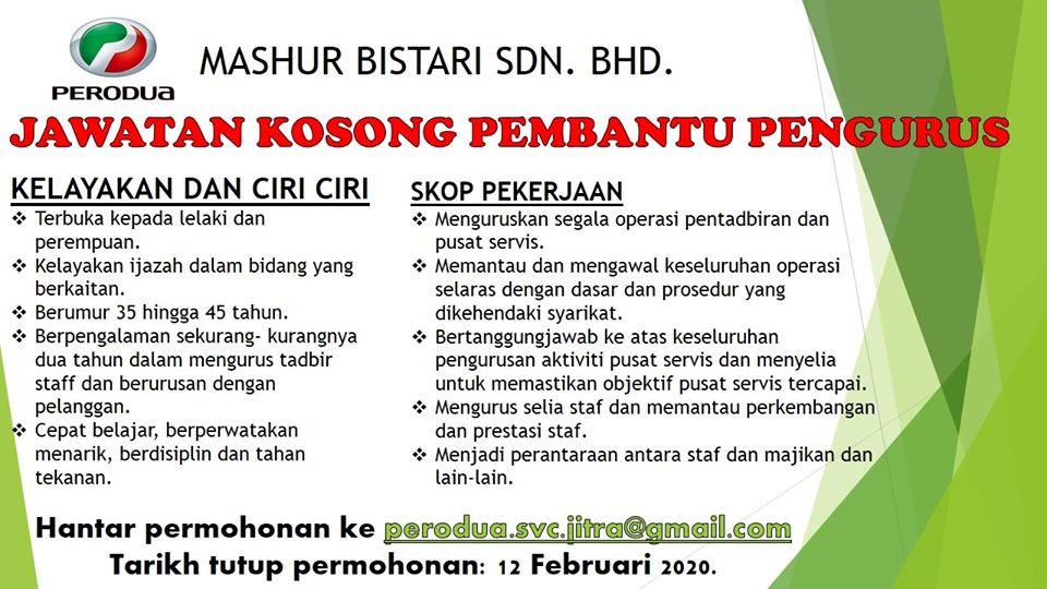 - Tarikh Tutup Permohonan: 12 Februari 2020