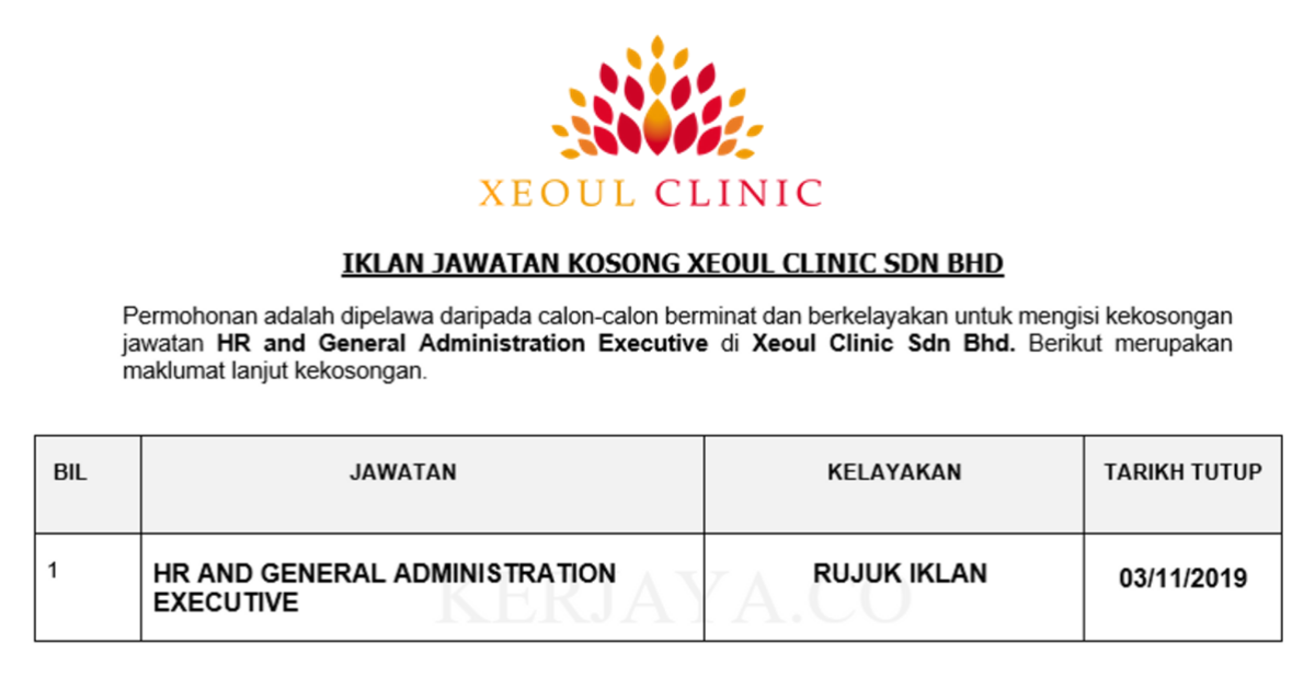 Xeoul Clinic Sdn Bhd ~ HR and General Administration Executive