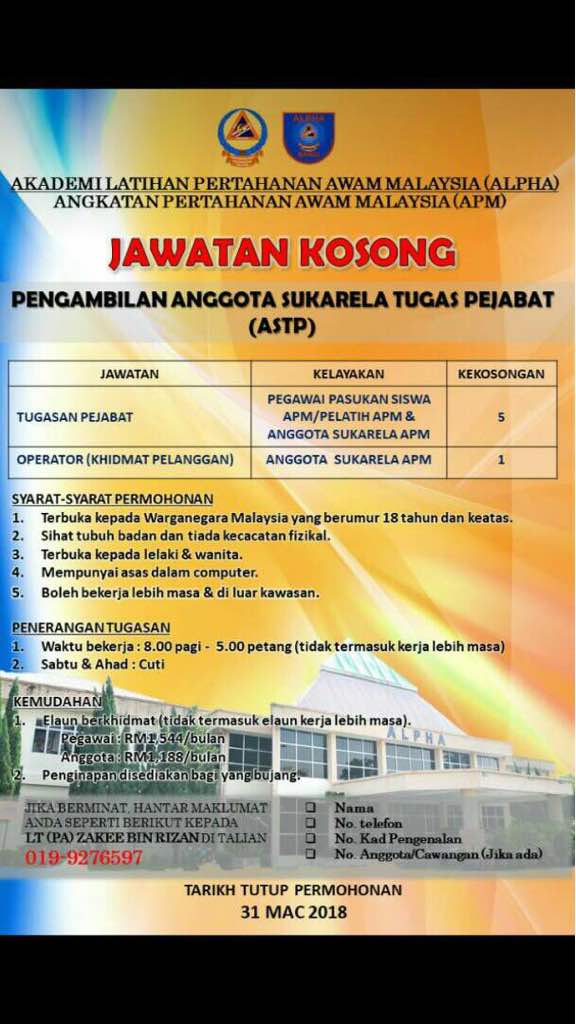 - Nama Majikan: Akademi Latihan Pertahanan Awam Malaysia (ALPHA)