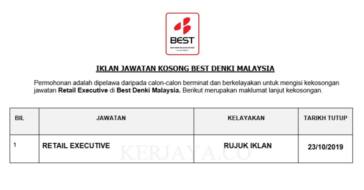 Permohonan Jawatan Kosong Terkini Best Denki Malaysia.