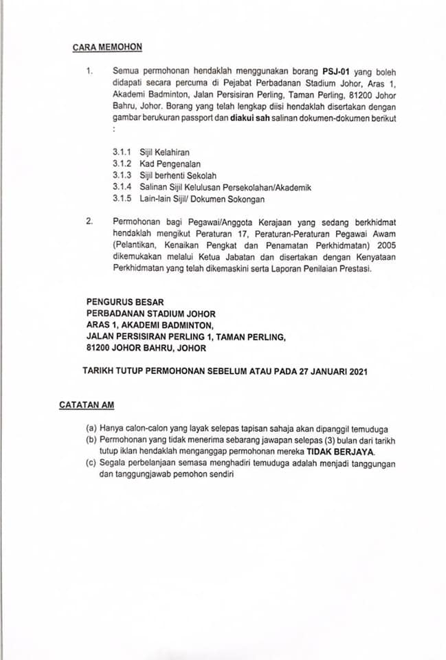 Ikalan Jawatan Perbadanan Stadium Johor
